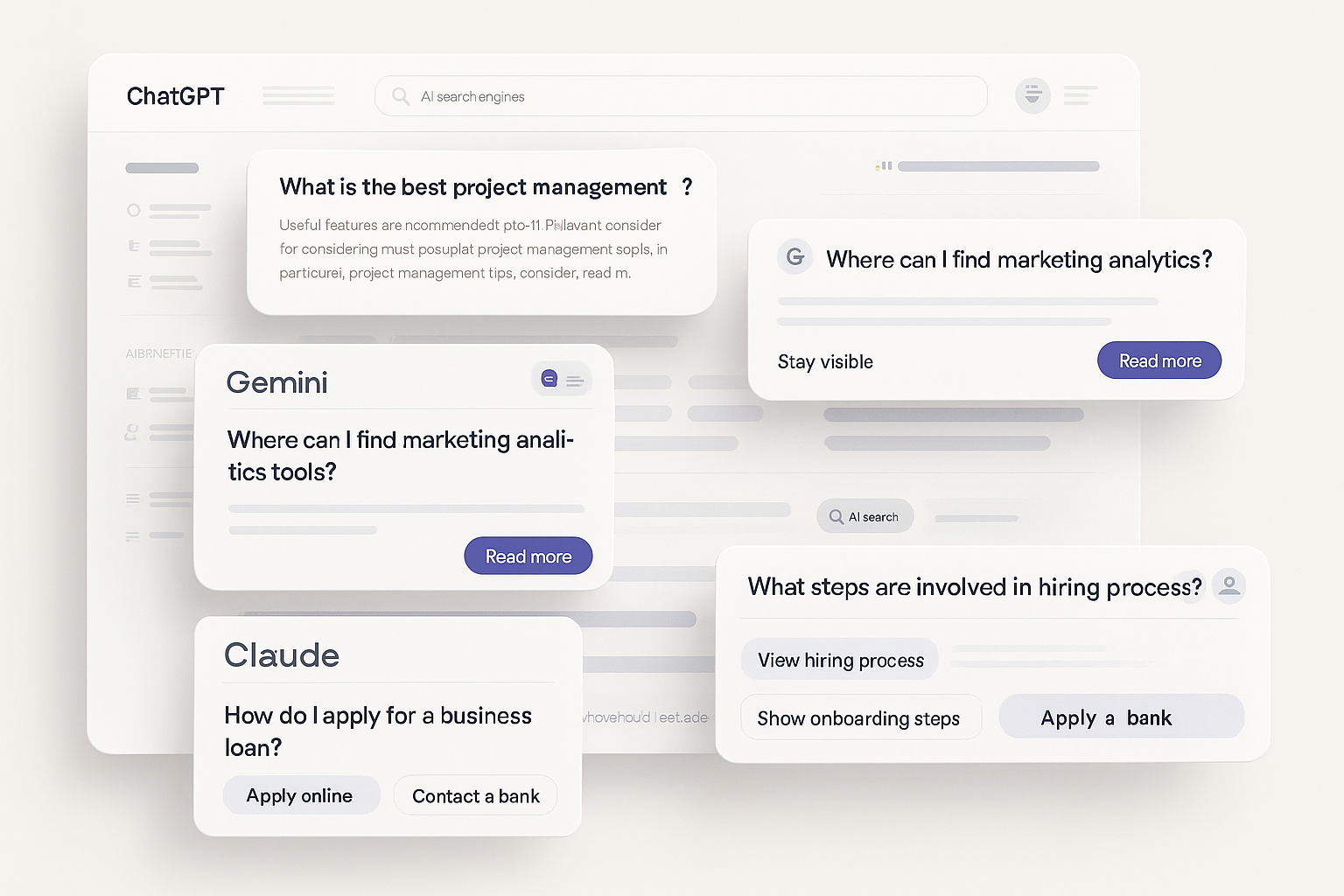We track how AI engines mention your brand across queries, industries, and competitors. You’ll see when and where you’re included — and when you’re missing.